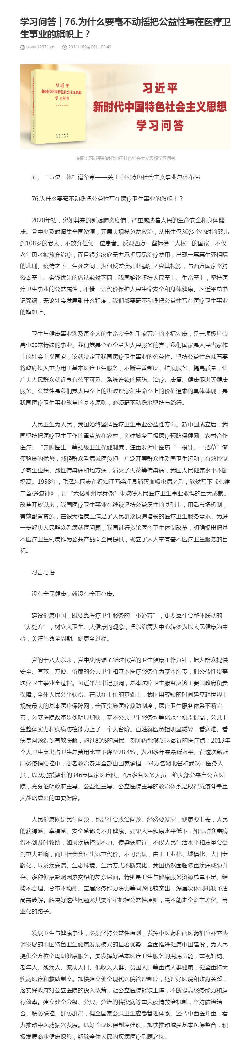 76.为什么要毫不动摇把公益性写在医疗卫生事业的旗帜上?