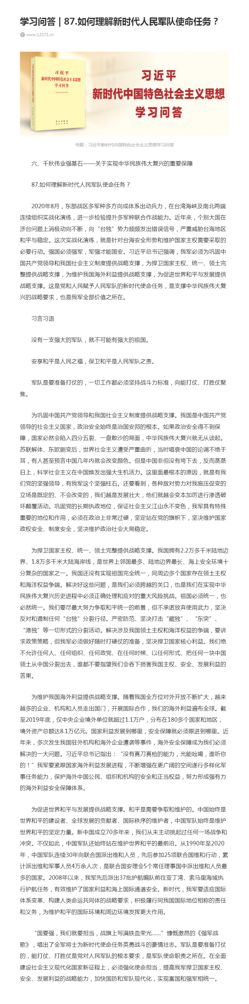 87.如何理解新时代人民军队使命任务?
