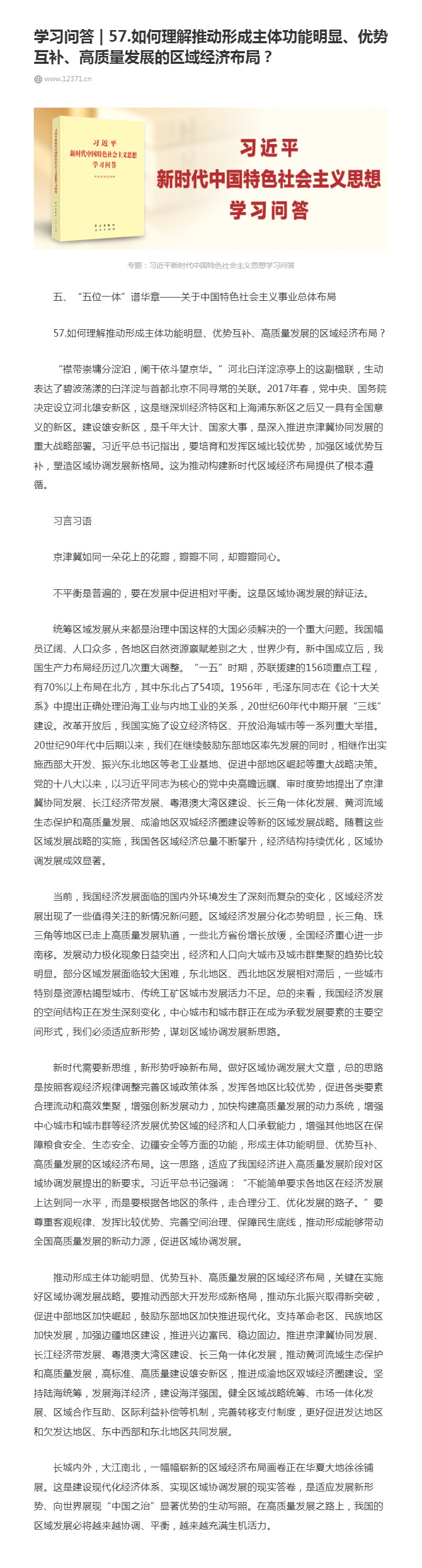 57.如何理解推动形成主体功能明显、优势互补、高质量发展的区域经济布局?