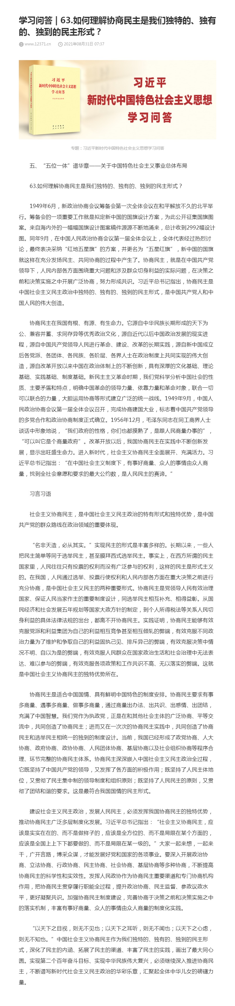 63.如何理解协商民主是我们独特的、独有的、独到的民主形式?