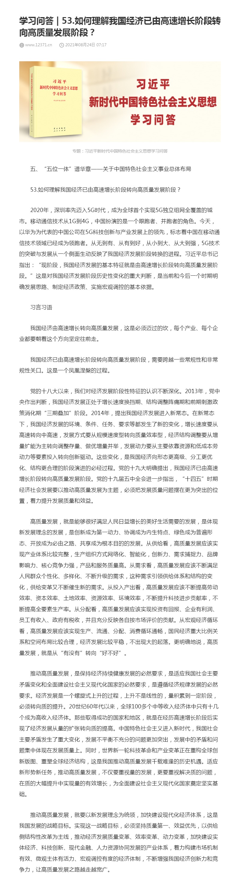 53.如何理解我国经济已由高速增长阶段转向高质量发展阶段?