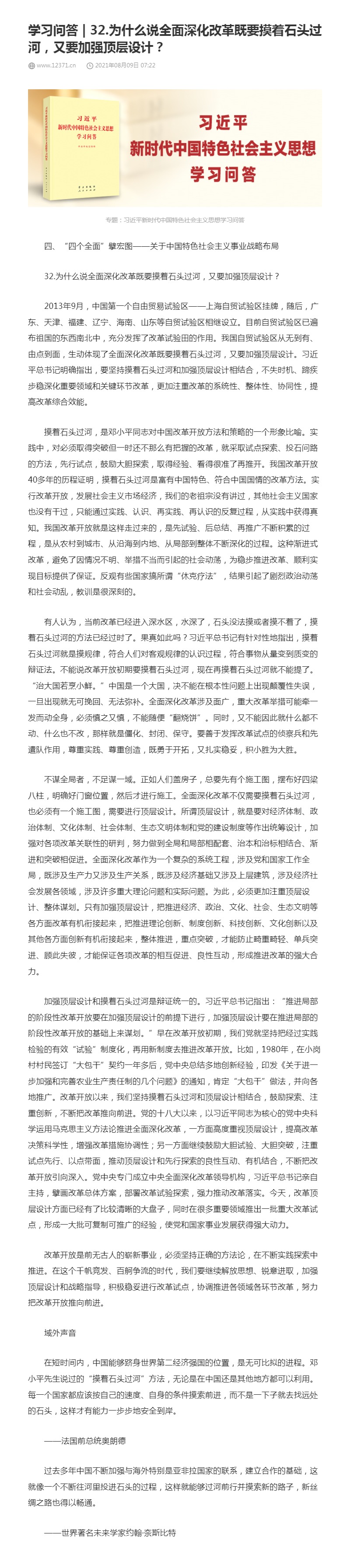 32.为什么说全面深化改革既要摸着石头过河,又要加强顶层设计?