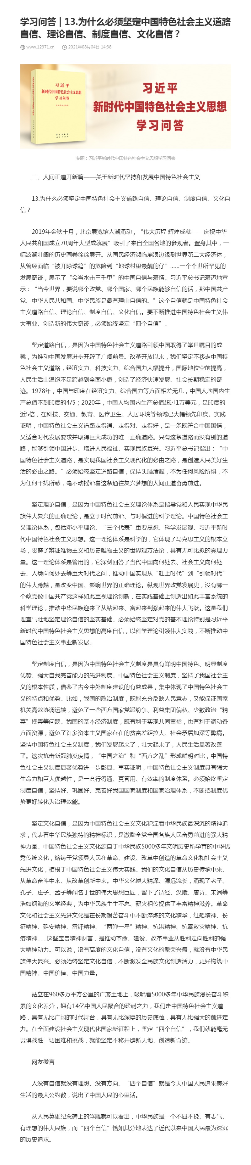 13.为什么必须坚定中国特色社会主义道路自信、理论自信、制度自信、文化自信?