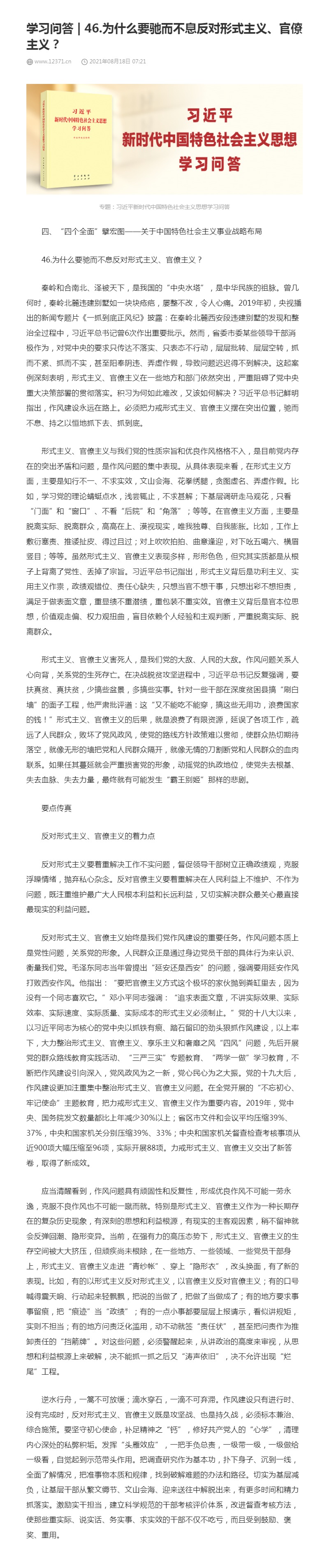 46.为什么要驰而不息反对形式主义、官僚主义?