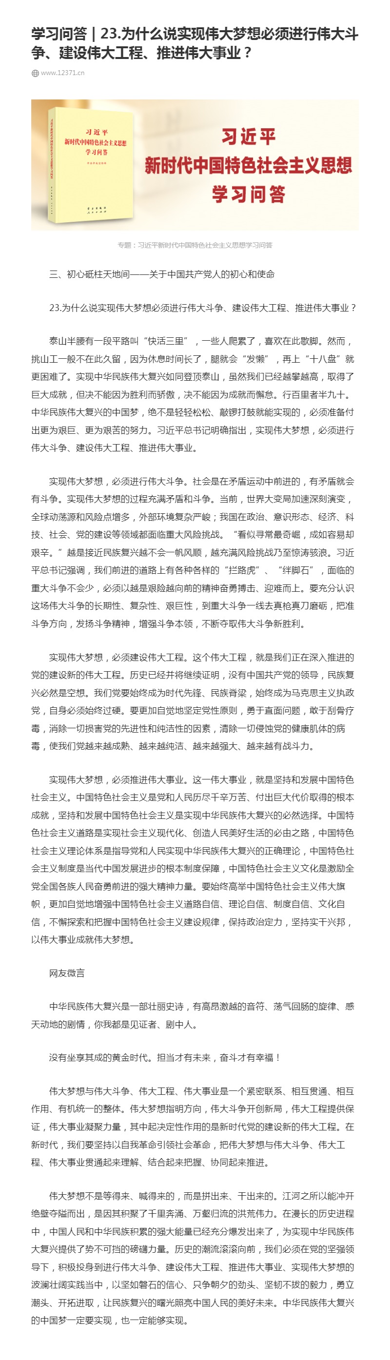 23.为什么说实现伟大梦想必须进行伟大斗争、建设伟大工程、推进伟大事业?