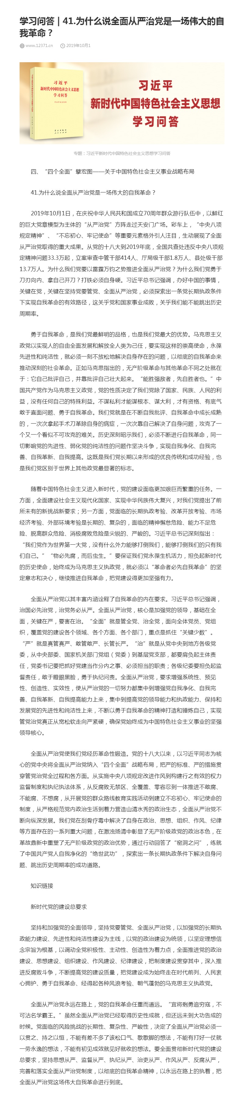 41.为什么说全面从严治党是一场伟大的自我革命?