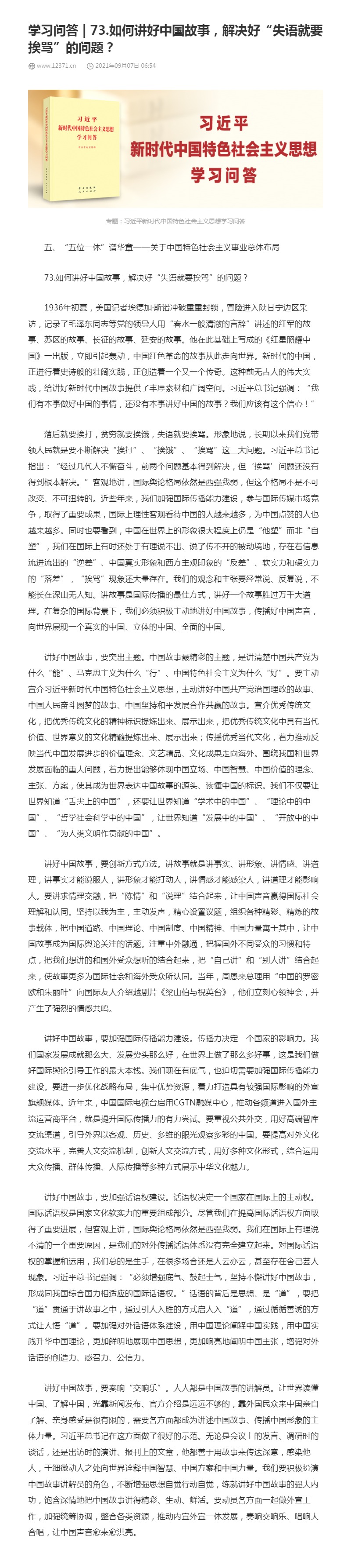 73.如何讲好中国故事,解决好“失语就要挨骂”的问题?