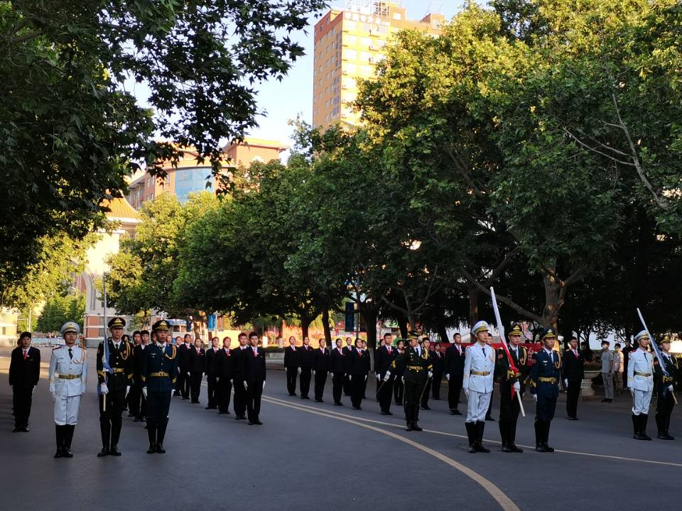 为弘扬五四精神,增强青年团员历史使命感,喜迎党的二十大,5月4日早上6:20,文法学院举行“青春献礼二十大,五四薪火百年传”系列活动之国旗下爱国主义朗诵和齐唱团歌活动。文法学院党委书记刘晓川、院长段丰乐、副院长赵严俊、团委书记郑玲玲,全体辅导员老师、主席团成员及部分2021级学生参加本次活动。