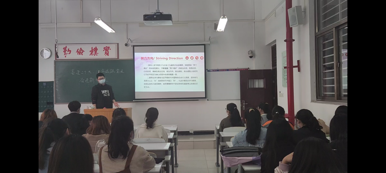 主题团日活动分为三部分展开:首先召开主题班会,组织学生阅读党史经典书籍,使同学们深刻了解党史经典书籍中承载着的是老一辈无产阶级革命者的信念,是他们高尚无私的体现。同时通过PPT讲解和播放相关影视片段的形式,让同学们深刻体会到党史是艰苦卓绝的奋斗史,铭刻着无数革命先烈为民族独立和人民解放而奋勇牺牲的斗争历程,染着血和泪,踏出了专属于中国的复兴强国之路。其次以抽签的形式,选出三名学生分享自己的思想感悟,带动了同学们的积极性,更加坚定同学们志不改、道不变的决心。最后,组织学生录制“永远跟党走,建功新征程”网络接力活动视频作品。进一步强化了会计学院19级本科审计专业学生心系祖国,志存高远,脚踏实地的精神品质,勉励同学们在谱写社会发展的新篇章中发挥好青年人的蓬勃干劲,贡献青春力量。