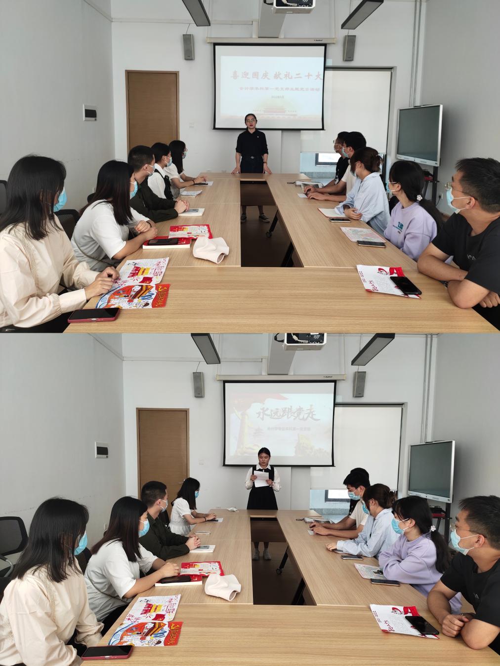 为深入贯彻习近平新时代中国特色社会主义思想,庆祝中华人民共和国成立73周年,迎接党的二十大召开,激发全体师生党员爱党、爱国、爱社会主义的热情,会计学院会计学专业本科第一党支部于9月29日在教学4号楼214会议室开展“喜迎国庆 献礼二十大”主题党日活动。本次活动由支部书记刘爽老师主持,支部全体党员参加。