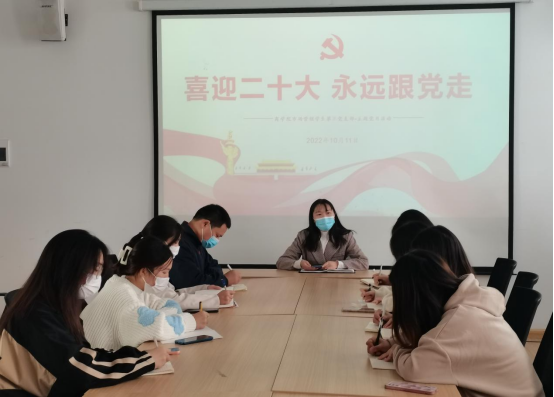 为迎接党的二十大胜利召开,团结引导党员坚定理想信念,勇担使命跟党走,10月11日下午,商学院市场营销学生第三党支部在教学二号楼315会议室组织开展了“喜迎二十大 永远跟党走”主题党日活动。院党委书记郭峰同志、院党委组织员李婉君同志以党员身份参加了活动。本次活动由支部书记丁昕同志主持。