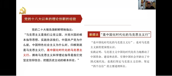 讲座围绕“一次十分重要的大会、一个鲜明的主题、一场伟大的变革、一个新的思想境界、一项新的使命任务、一项新的战略布暑、一项新的伟大工程、一个新的寄托、一次新的号召”九个方面,对党的二十大精神进行系统阐释和深入解读。