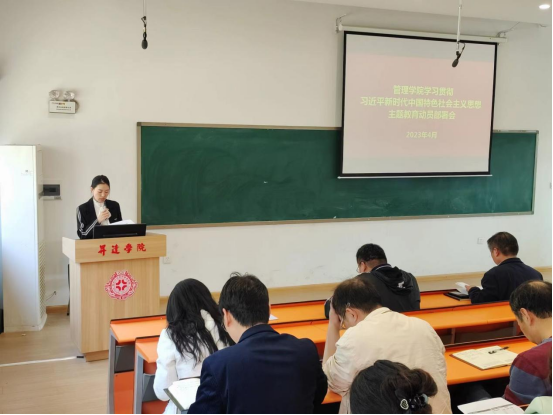 4月27日下午,管理学院学习贯彻习近平新时代中国特色社会主义思想主题教育动员部署会在教学2号楼208召开。学院全体党委委员、教职工及学生党员代表参加会议。会议由学院党委书记职正路主持。