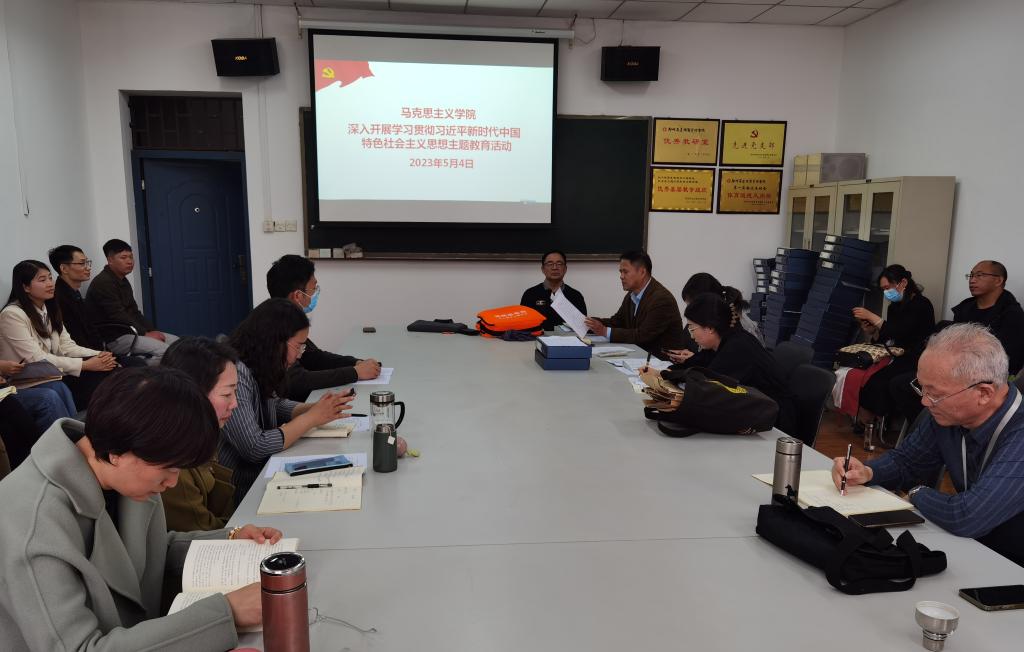 5月4日下午,马克思主义学院在综合楼211会议室召开学习贯彻习近平新时代中国特色社会主义思想主题教育专题会议。院长王宪政、教学秘书苗淑娟及全体教师参加学习,党总支书记窦峰主持。