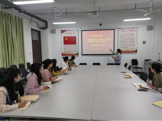 工程造价教研室党支部书记刘亚萍同志指出,党的二十大报告首次把“实施科教兴国战略,强化现代化建设人才支撑”单独成章,充分体现了新时代新征程中教育、科技、人才的重要地位。随后,阐述了科教兴国的战略深意,提到了“教育、科技、人才三者之间具有有机联系,通过协同配合塑造发展的新动能新优势”对教育的深远影响,充分体现了新时代新征程中教育发展的重大使命。