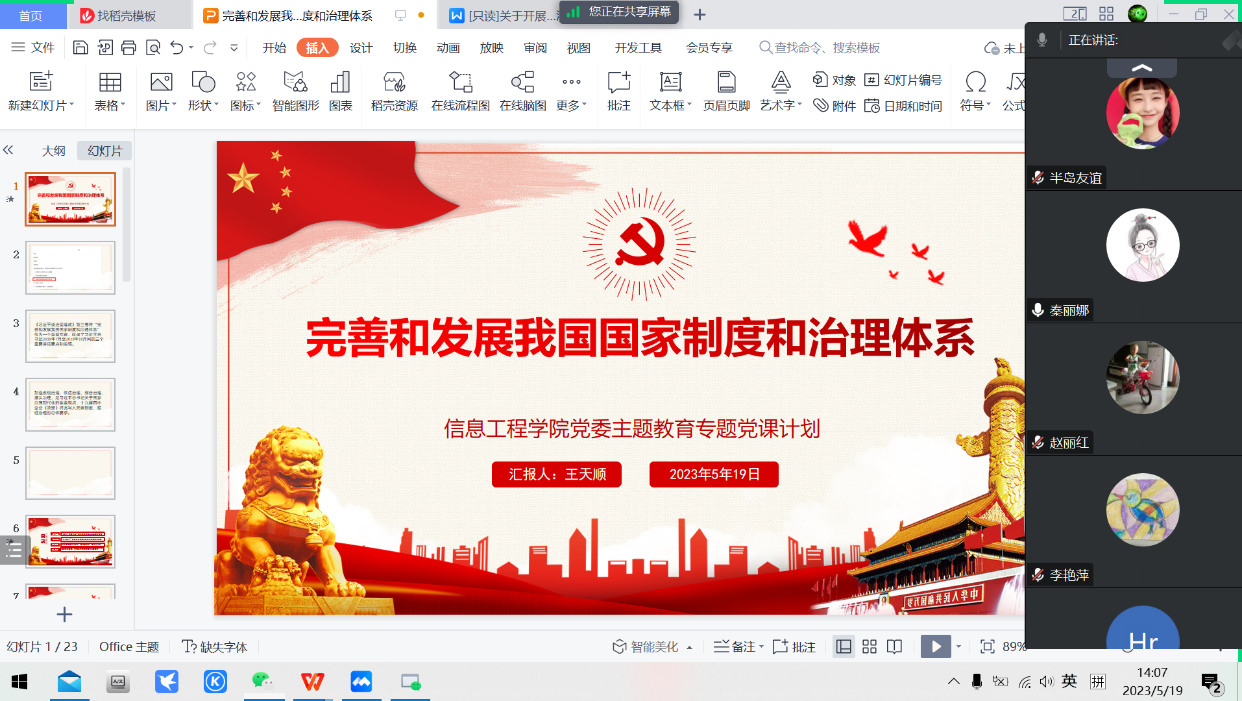 根据学院主题教育相关安排,5月19日下午,信工学院计算机科学与技术教研室党支部开展“纪律教育月”专题学习活动。活动在线上举行,由支部书记王天顺主持,支部全体党员参加。