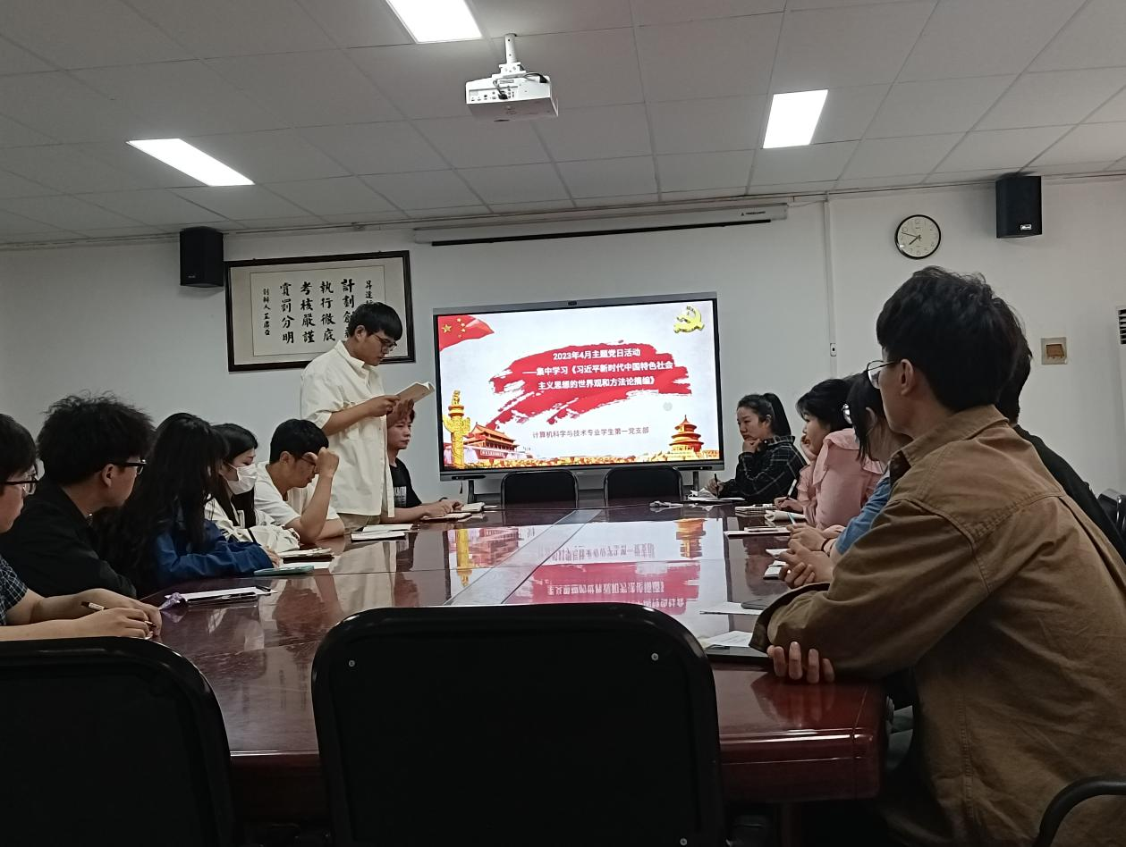4月28日下午1点,信息工程学院计算机科学与技术专业学生第一党支部在资讯楼104会议室,组织开展主题教育专题学习。支部书记牛新翔主持学习会,支部全体党员、部分积极分子参加学习。