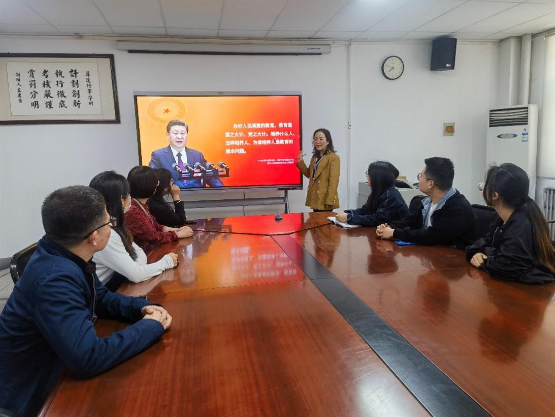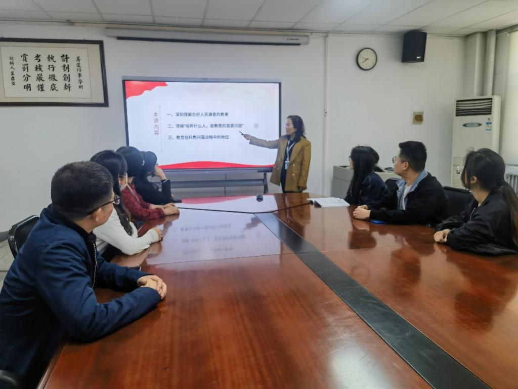课上,吕丽平带领大家从“深刻理解办好人民满意的教育”“理解‘培养什么人,是教育的首要问题’”和“教育在科教兴国战略中的地位”三个方面进行深入学习。
