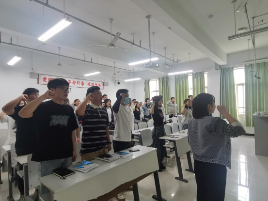 最后,组织委员李新带领全体党员面向鲜红的党旗,庄严宣誓。同时李新代表支委会向新发展的党员同志提出要求:希望大家能够不断加强党性修养,在学习中进一步学习贯彻习近平新时代中国特色社会主义思想,自觉增强“四个意识”,坚定“四个自信”,做到“两个维护”,能够在学习、生活、工作等各方面更加严格要求自己,发挥共产党员的先锋模范作用,争做优秀共产党员。党员同志同志纷纷表示:会牢记入党初心,在今后的学习、工作、生活中,进一步加强学习,敢于争先,勤于奋斗,积极作为,真正发挥出模范作用,不辱党员身份。