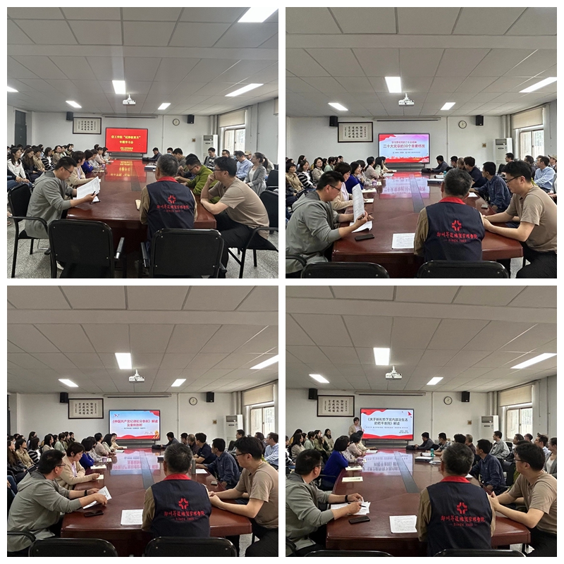 会上,学院党委班子成员依次领学党纪法规。首先,学院党委书记张现水带头领学《中国共产党章程》,重点解读了党的二十大对党章所作修改的主要内容和亮点,阐述了党章修改的重大意义。其次,学院党委宣传委员、行政秘书王崇领学《中国共产党纪律处分条例》,主要讲述了《条例》修改的重大意义、主要内容以及相关违纪违法典型案例。最后,党委组织委员厉祎领学《关于新形势下党内政治生活的若干准则》,详细介绍了《准则》的制定背景、重点和关键以及如何过好组织生活等内容。