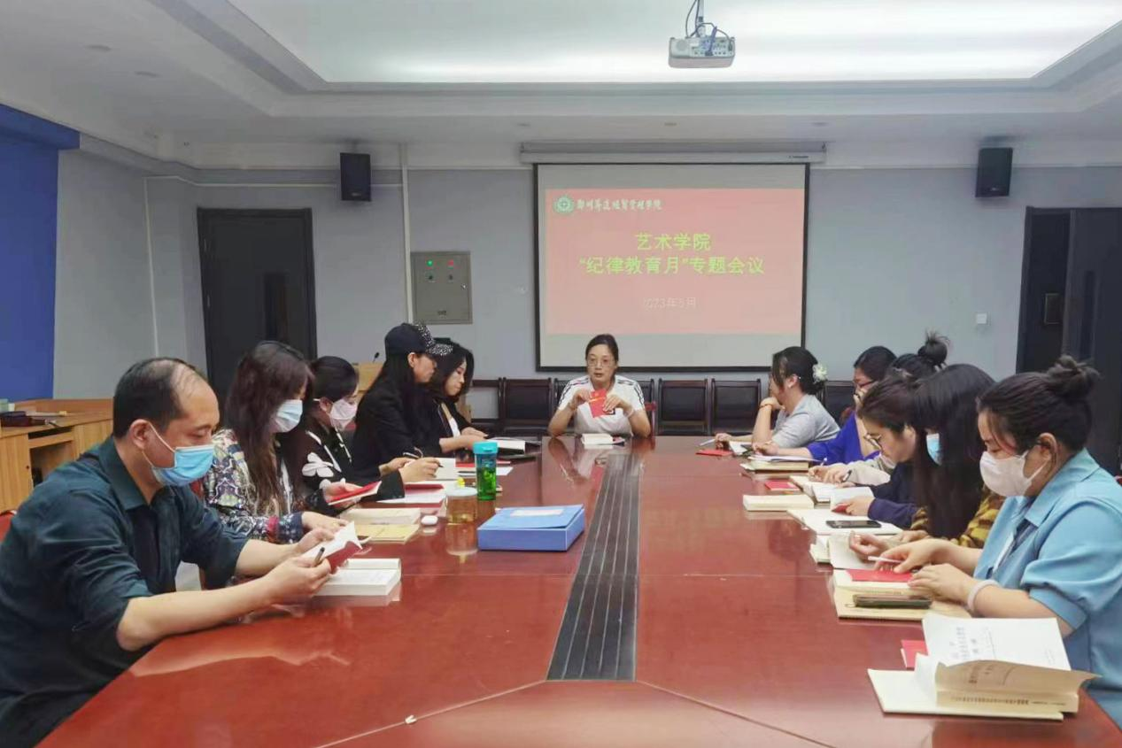 为深入学习贯彻习近平新时代中国特色社会主义思想和党的二十大精神,推进学院全面从严治党向纵深发展。5月25日下午,艺术学院党委组织召开2023年度“纪律教育月”专题学习会议。本次会议由院党委书记张小雁同志主持,艺术学院党委委员、各党支部书记参会。