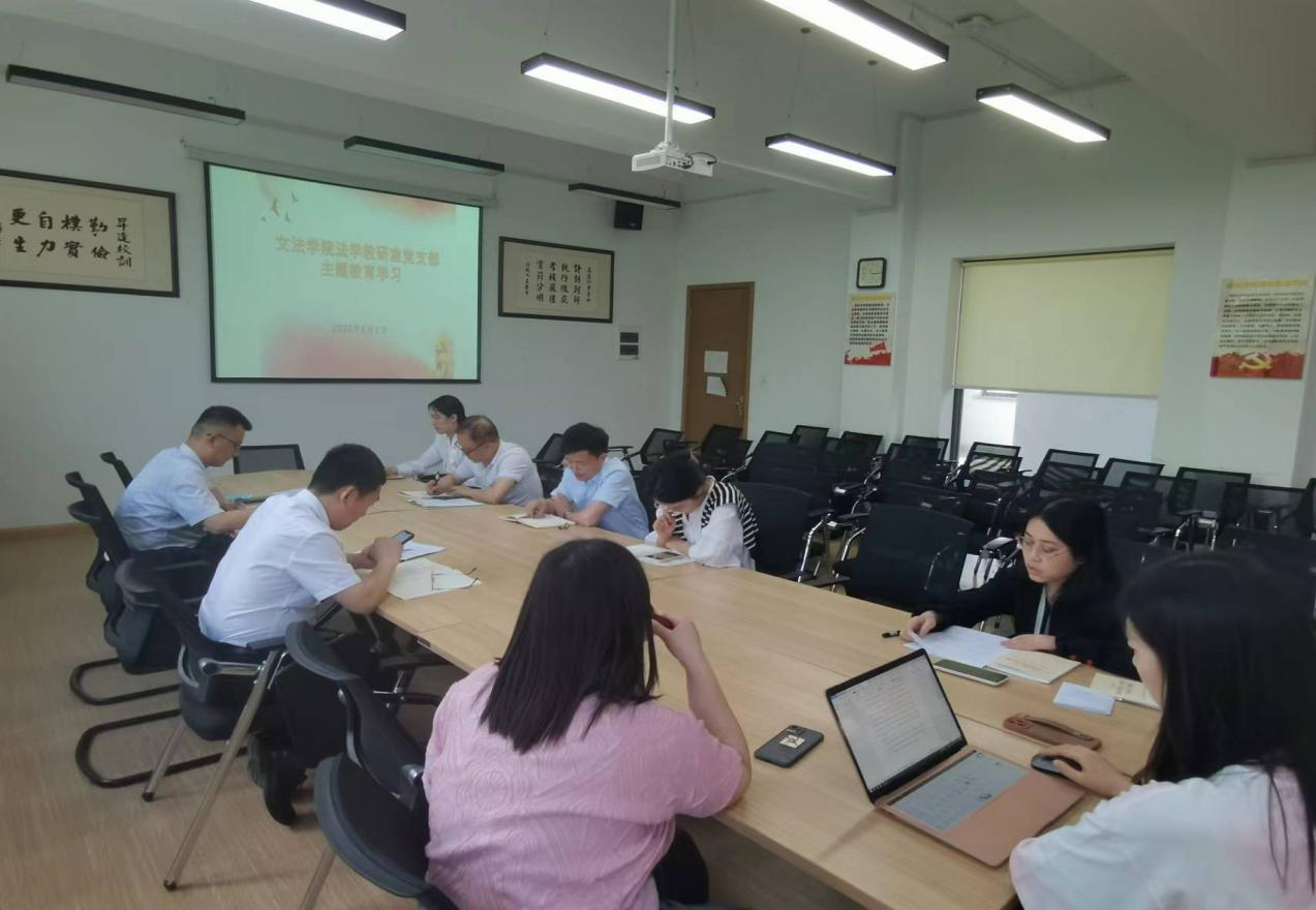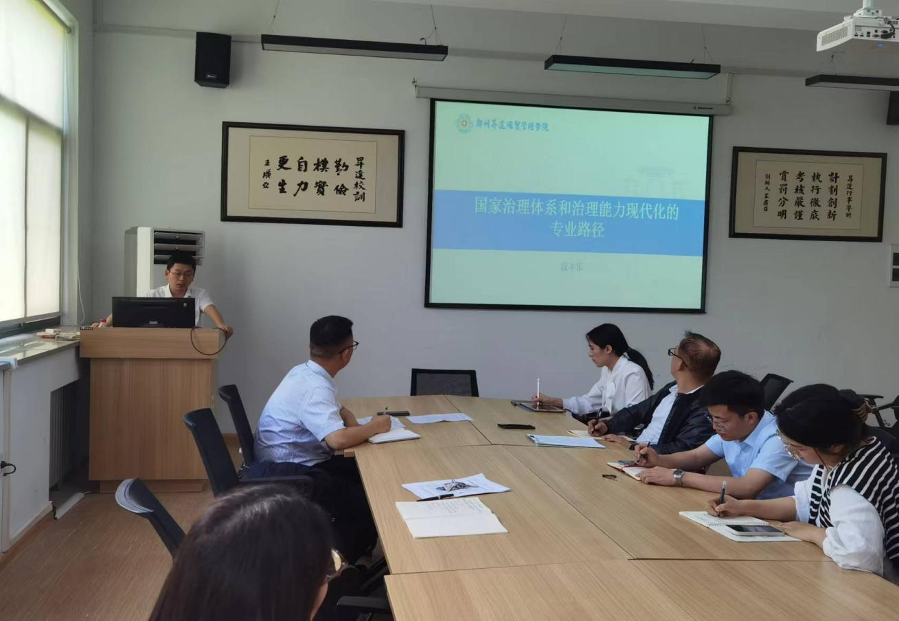 为深入学习贯彻习近平新时代中国特色社会主义思想主题教育,6月1日下午,文法学院院长段丰乐在法学教研室党支部讲授题为“国家治理体系和治理能力现代化的专业路径”的主题党课,支部全体党员参加。