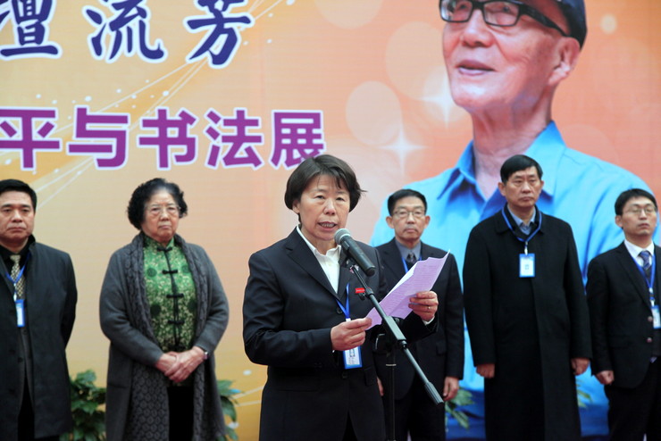 郭院长致辞。首先她对各位领导、各位师生的到来表示热烈的欢迎。提及创办人,郭院长感情真挚,她说,创办人王广亚博士是著名豫籍台湾教育家,是升达学院的缔造者。一生取得诸多殊荣,不仅是广受赞誉的教育巨擘、杏坛楷模,在书法艺术上也造诣颇深。创办人的书法作品方严正大,苍健有力,朴拙雄浑,端庄遒劲,既师法古人又自成一体,观之令人顿生圆润浑厚,气势磅礴,有心旷神怡之感。郭院长语气凝重,她说道,2016年12月29日,是我们敬爱的创办人王广亚博士逝世一周年纪念日。今天,我们在此举办的“师恩浩荡 杏坛流芳——创办人王广亚博士生平与书法展”,是纪念创办人王广亚博士逝世一周年系列活动的重要内容。今天的书法展,就是要在欣赏书法,陶冶情操的同时,回顾创办人的人生求索和丰功伟绩,学习创办人回馈桑梓、造福家乡的高尚情怀,学习创办人无私奉献的崇高境界,传承和弘扬创办人教育思想,饮水思源,开拓创新,为升达更好的明天贡献力量。最后,郭院长预祝“创办人王广亚博士生平与书法展”圆满成功。