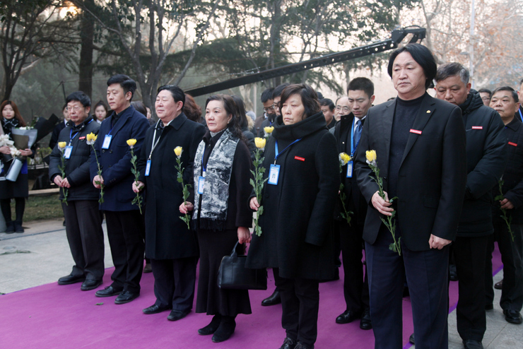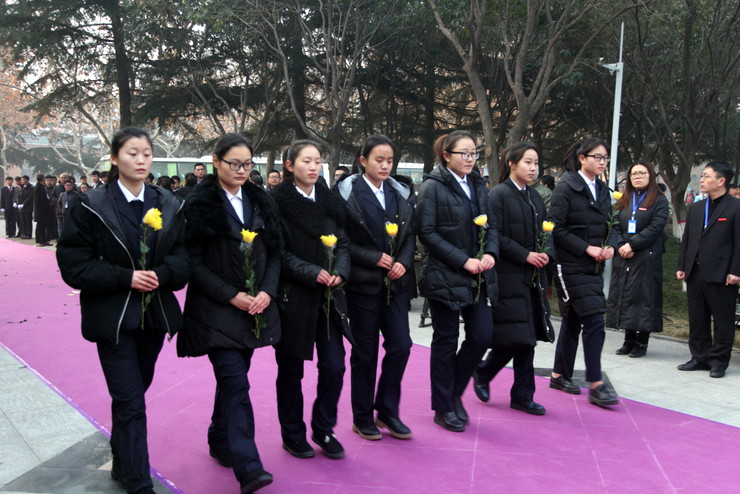 参加献花仪式的有,董事长携全体院领导:院长郭爱先教授、院党委书记张德伟、常务副院长崔慕岳教授、党委副书记戎庭银,副院长张洁、张金安,执行董事王新奇博士,副院长段丰乐、张欣等出席献花仪式。创办人亲属、升达学院原常务副院长张强武,原升达学院职工张占武出席了在福寿园的献花仪式。各处室主管、各系部主任、副主任,各系党总支书记及师生代表近200人参加了献花仪式。献花仪式由院办主任朱永恒主持。