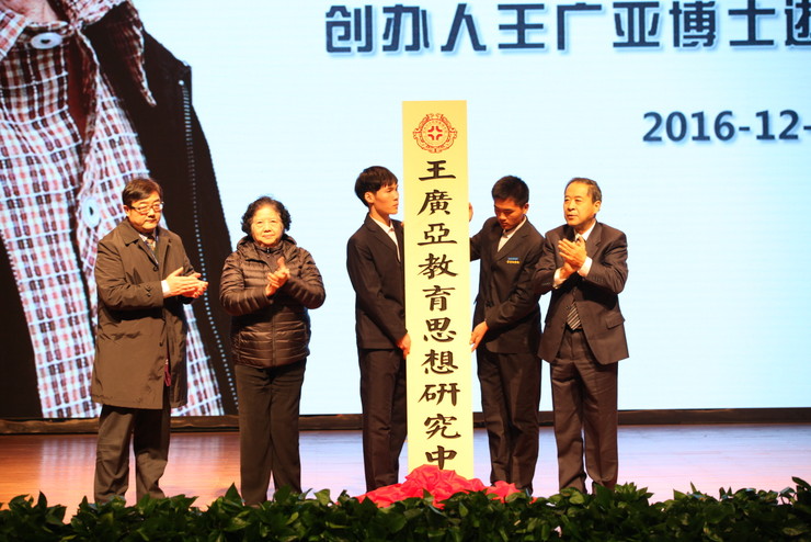 创办人教育思想是他60多年办学实践的系统总结,博大精深、内涵丰富,是民办教育的一笔宝贵财富。为深入学习研究创办人教育思想,学院决定成立“王广亚教育思想研究中心”。陈义初副主席、王淑芳董事长为“王广亚教育思想研究中心”揭牌。