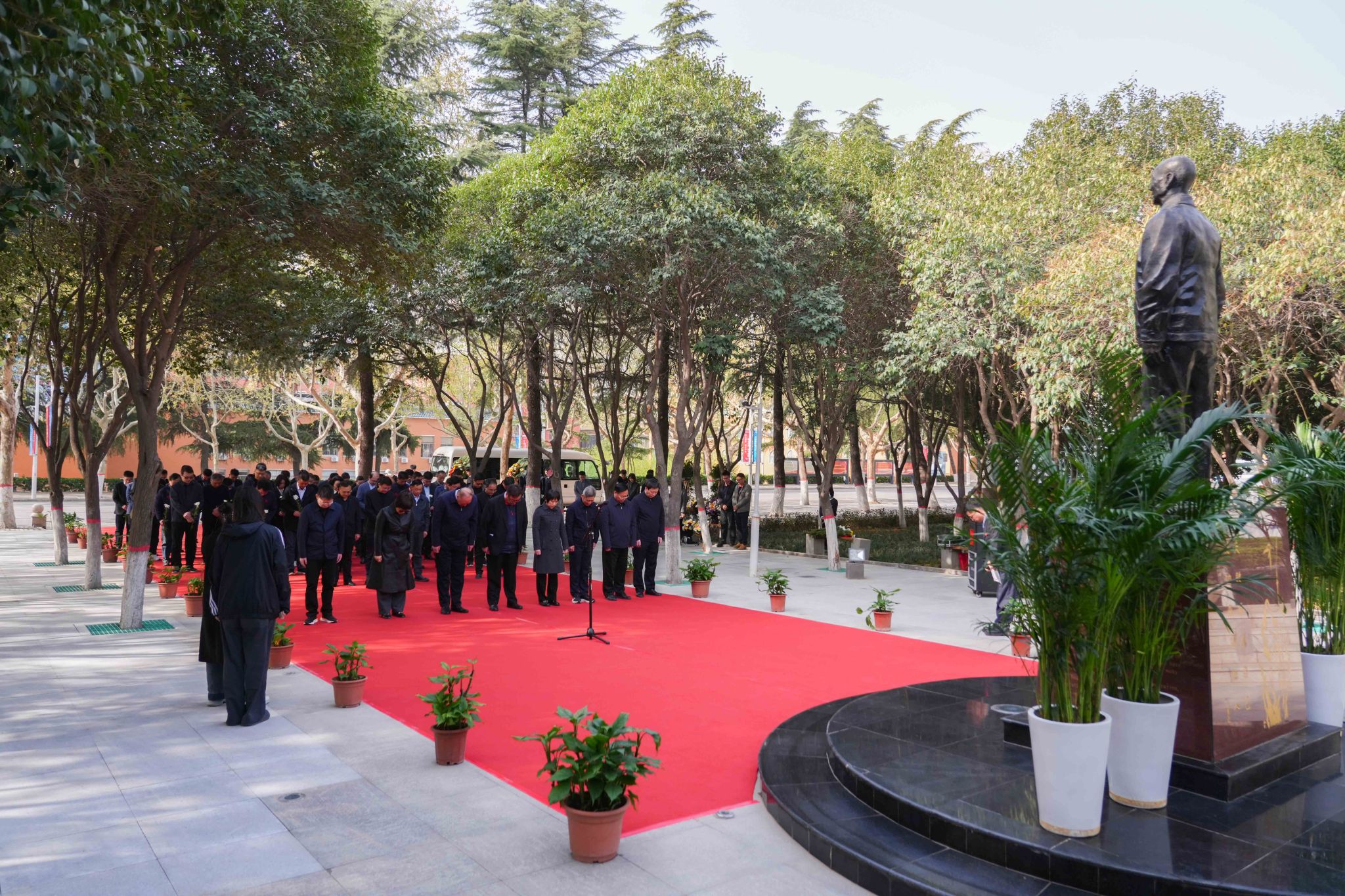 9时,献花仪式正式开始。在校领导的带领下,大家先向创办人王广亚博士铜像默哀,又恭恭敬敬地三鞠躬,表达对创办人的深切怀念之情。