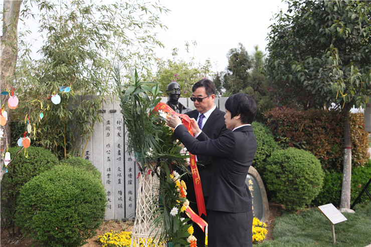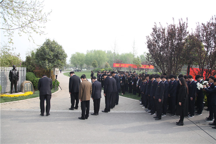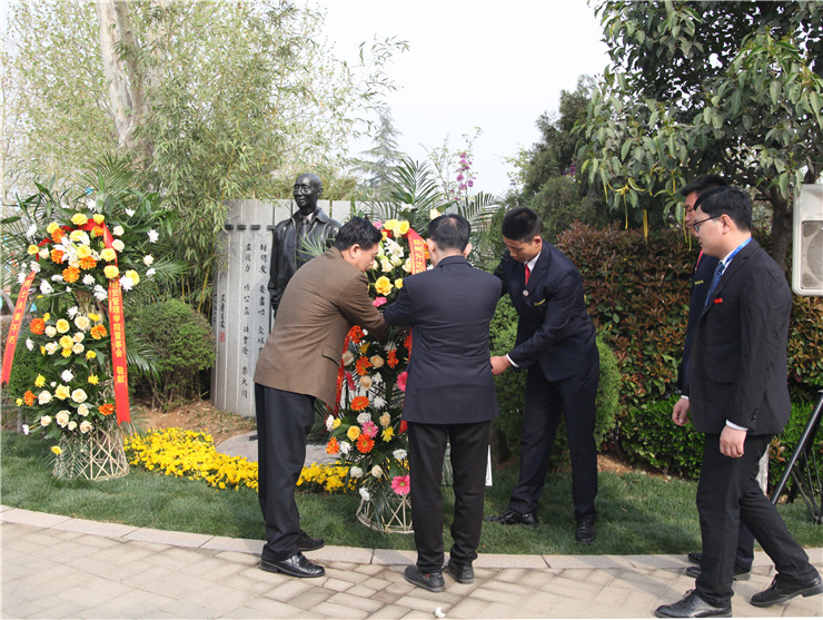 清明时节悼英魂,深切怀念创办人。4月4日上午,在清明节到来前夕,我校在龙湖镇的河南省福寿园、创办人王广亚博士纪念像前,举行缅怀创办人王广亚博士献花仪式。出席仪式的校领导有:执行董事王新奇、校党委书记张德伟、常务副校长崔慕岳、校党委副书记兼纪委书记戎庭银、副校长兼工会主席张金安等。福寿园实业有限公司副总经理陈振楠先生和学校各行政单位主管、副主管,二级学院院长、总支书记、副院长,教学部主任、副主任,教师代表及学生代表,参加了敬献鲜花仪式。敬献鲜花仪式由校办主任朱永恒主持。