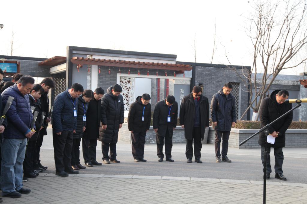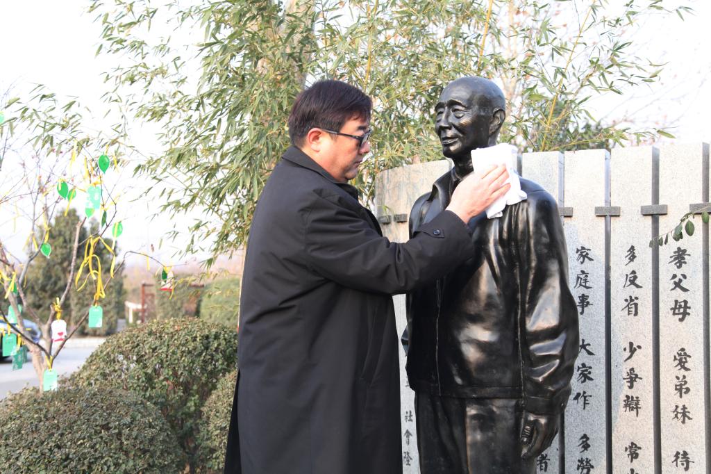 是日上午,参加仪式的人员,冒着严寒,怀着无比崇敬的心情来到创办人纪念像前,瞻仰创办人并敬献鲜花,缅怀创办人的不朽功绩和高风亮节,表达对创办人的无限哀思和深切怀念。
