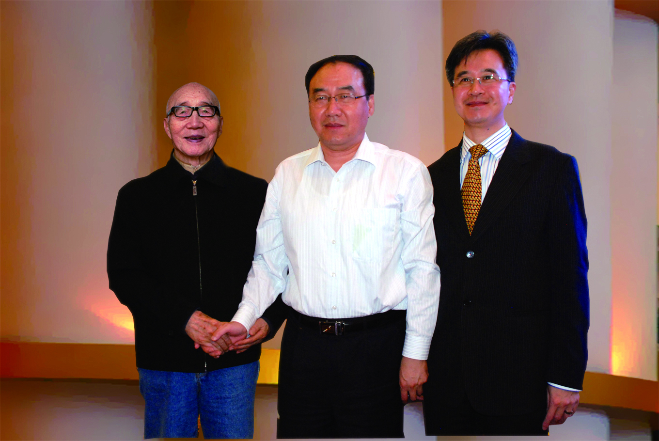 十七届中共中央政治局常委李长春(右)在任河南省委书记期间接见创办人