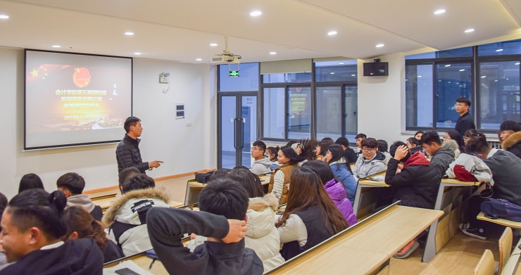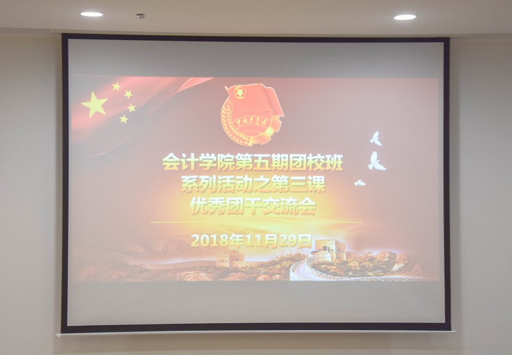 为提高学生干部管理班级的能力,加强班级凝聚力,11月29日晚6:30在四号楼成功举行了会计学院第五期团校班系列活动之优秀团干交流会。莅临本次大会的嘉宾有会计学院16级会电本一班团支书张玉博,17级会电本二班班长王月妍,17级财本一班团支书刘玉山,17级会本三班班长金文洁。