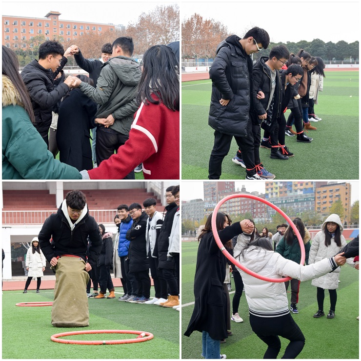 此次趣味运动会是由团校班全体成员参加并共分为四个小组进行比赛,共有五个项目,分别是坐地起身,传递呼啦圈,解千千结,袋鼠跳接力和十人九足。比赛过程中有相应的工作人员在旁引导,以便使同学们更快地适应各游戏的规则。趣味运动会在团校班班主任濮素和尹振宇宣布下正式开始。各个项目四组插花进行,有序地完成了各项比赛内容。比赛期间团校班全体成员配合默契,相互信任,充分展现了学生干部的组织和协作能力,也更好地体现了团校班积极向上,勇于拼搏的精神。趣味运动会也在观众们的喝彩和运动成员的欢呼中落下了帷幕。