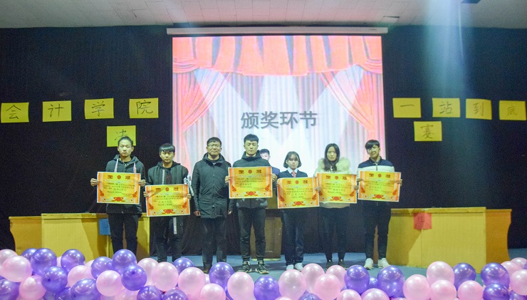 经过激烈角逐,比赛落下帷幕,激动的颁奖时刻到来。在个人赛奖中,由会计学院第24届学生会副主席梁语秋给18会本9班王亚婷颁发三等奖,由会计学院第24届社团联合会理事长周晨阳为18税收1班郭啸阳颁发二等奖,由会计学院第24届学生会主席文静为18会本2班秦梦瑶颁发一等奖。在团体赛奖中,由会计学院第二十四届团委副书记徐林林为18会本1班颁发二等奖,会计学院行政秘书兼团委副书记刘锦老师为18财本1班颁发一等奖,行政秘书兼团委书记陈刚老师分别为18税收1班和18财本2班颁发精神文明奖,为18会本3班和18会本6班颁发道德风尚奖,为18会本8班和会本5本颁发最佳组织奖。