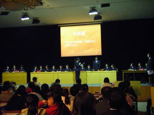 本次比赛共分6个环节,必答题、抢答题、限时题、亲友团加分题、风险题、主观题。每一个环节中选手们的回答都胸有成竹、精彩激烈,台下不时爆发出阵阵掌声和啦啦队员们的加油鼓劲声,整个会场气氛热烈。经过两个小时的激烈角逐,08会本四班以绝对的优势胜出,获得冠军;08会本二班、08财本四班获得二等奖,08会本五班、08会本八班、08会本十班获得三等奖;08会电专二班和08财本一班分获最佳组织奖和最佳精神风貌奖,另有9名同学获得优秀个人奖。(供稿:会计系 郑晶)