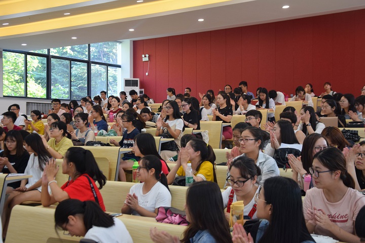 会议在主持人的简单介绍下拉开帷幕。首先由学长学姐们向同学们分享考研经验、考证方法、学习技巧。他们从如何选择一个适合自己的学校到如何去备考,包括最后的复试经验,都毫不吝啬一一给大家分享,现场掌声不断。