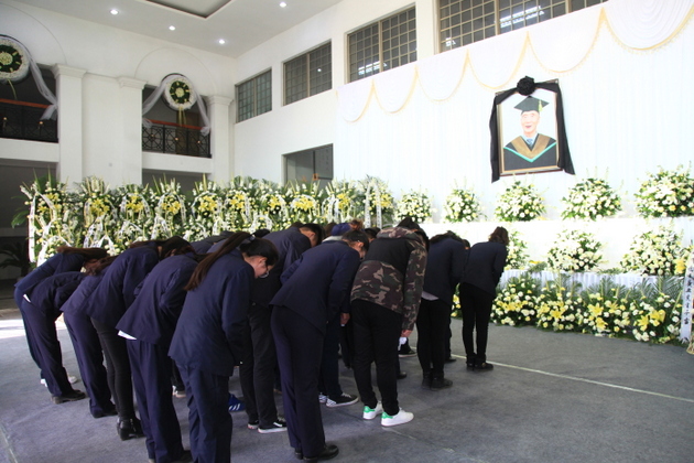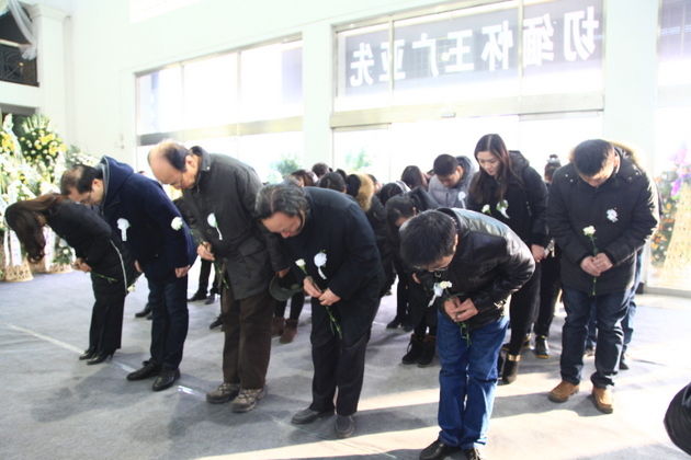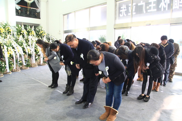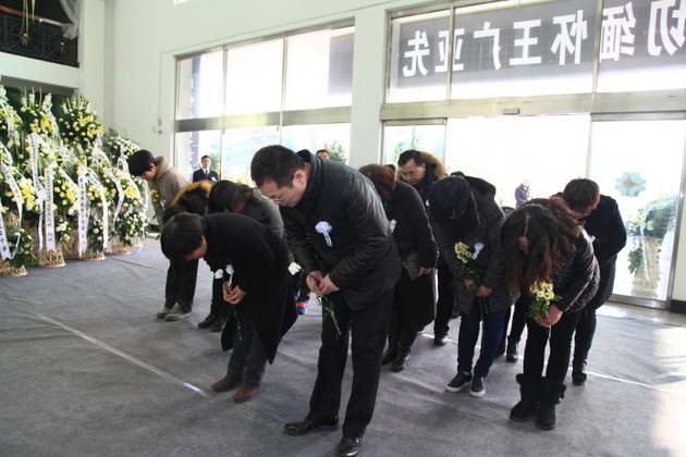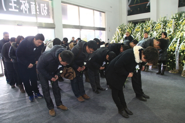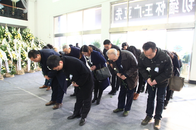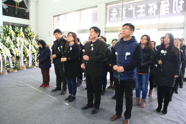 追悼仪式上,各系师生手持白花,失声恸哭,向尊敬的创办人行鞠躬礼,感恩创办人,感恩创办人给予升达和升达人的一切。