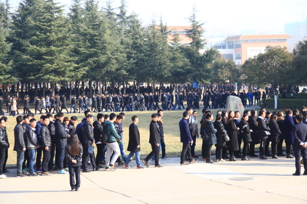 12月30日下午14:00时,在思源会馆内,哀乐低旋,师生吊唁活动正式开始。金贸系主任何伟、金贸系党总支书记钟江鸽、副院长兼会计系主任张欣、会计系党总支书记张红阳、管理学系主任纪德尚、管理学系党总支书记张小雁、商学系主任于平、商学系党总支书记宋维清、信工系主任李学桥、信工系党总支书记王新平、外语系主任马秉义、外语系党总支书记石皓召、副院长兼文法系主任段丰乐、文法系党总支书记杨明志、艺术系主任肖生、艺术系副主任赵维平、艺术系党总支书记韦杨建、建工系主任孙建超、体育系主任张王利、建工系兼体育系党总支书记韩炎涛和各系当天下午没有课程安排或下课后赶来的9163名师生代表自发参加悼念活动。