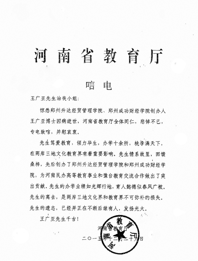 河南省教育厅:唁电