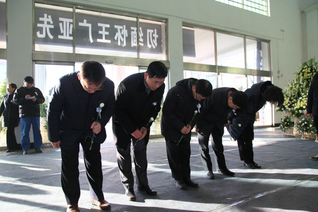 9时,沉痛缅怀尊敬的创办人王广亚先生悼念活动开始。低沉的哀乐在大厅萦回,院长崔慕岳教授、院党委书记张德伟、院党委副书记戎庭银,副院长张洁、张金安等,手持鲜花来到吊唁大厅,向创办人王广亚先生遗像鞠躬哀悼,之后,他们向创办人的家属亲切握手,致以问候。