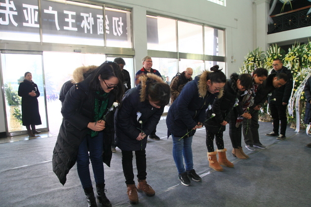 接着,院党办、院办、教务处、评估中心、学务处、总务处、人事处、院团委、财务处、发规处、科研处、招生就业处、外事办、公关室、图书馆、现教中心、健康中心、共科部、公外部等部门的数百名教职员工,排着整齐的队伍,一一来到吊唁大厅,沉痛悼念和深切缅怀王广亚先生。大家默默地向创办人的遗像低头致哀,缅怀杰出的教育家、我们的导师、我们的大家长、令人尊敬的创办人王广亚博士。