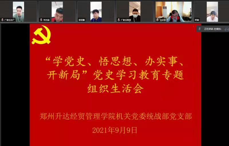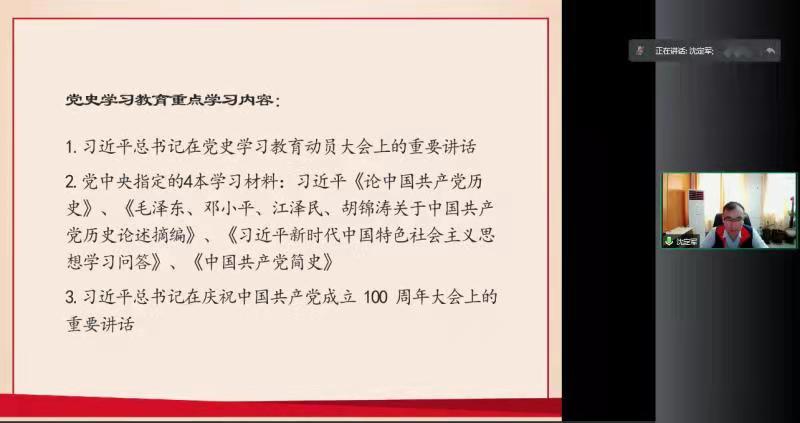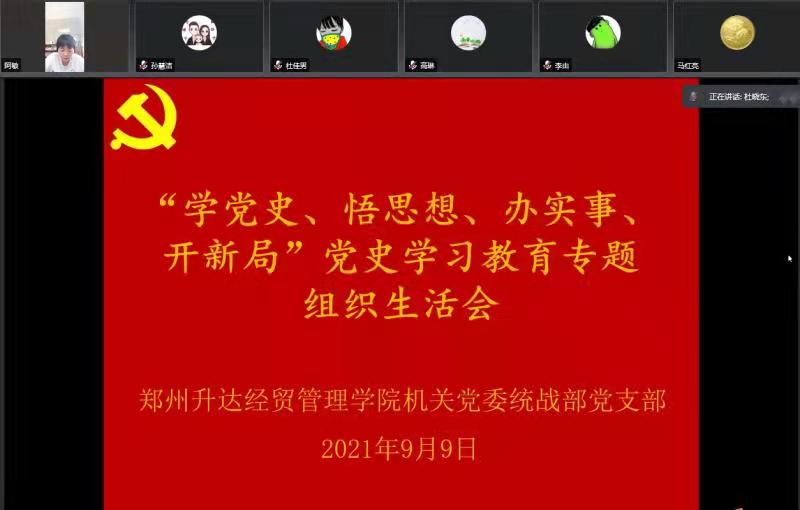 2021年9月9日上午,机关党委统战部党支部通过线上网络视频形式召开“学党史、悟思想、办实事、开新局”党史学习教育专题组织生活会。会议由党支部书记沈定军主持,支部全体党员参加了会议。