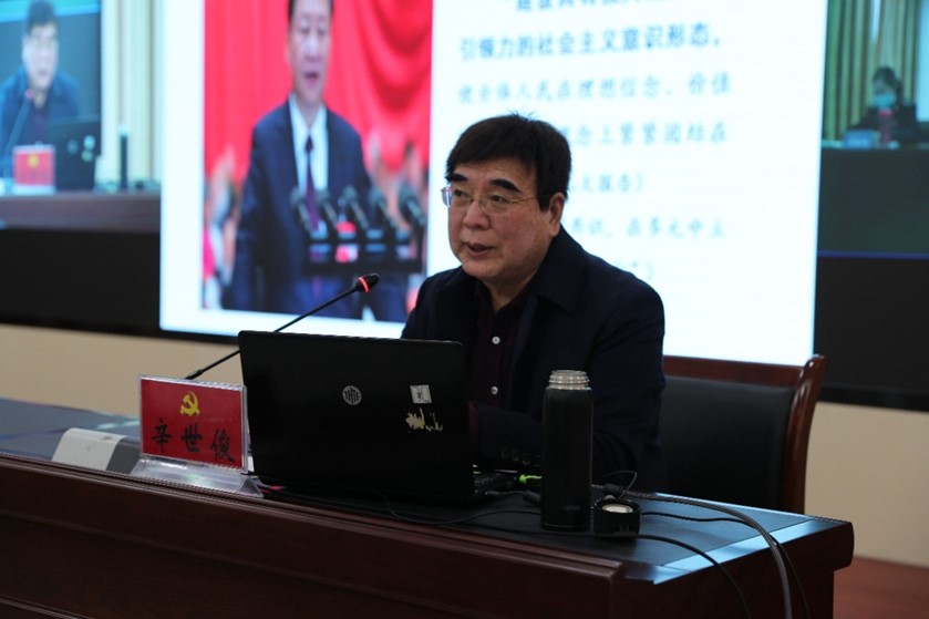 2021年4月,辛教授应邀前往郑州大学护理与健康学院作题为《当前意识形态的形势与任务》的意识形态工作专题报告。报告会上,辛教授从意识形态斗争的必然性与重要性、意识形态领域面临的形势、做好新时代意识形态工作的基本要求等方面,以真实生动的案例讲解了新时代意识形态工作的重要性以及马克思主义在意识形态领域的指导地位。10月,辛教授应邀前往中原再担保集团作意识形态专题报告;11月,辛教授应邀前往许昌市税务局作意识形态专题报告。辛教授深入社会各界开展的意识形态建设宣讲活动,广受好评,产生了积极的社会影响。