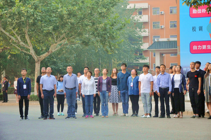 9月20日清晨,我院隆重举行2016级新生国旗教育活动。院长郭爱先教授、学务长张现水、院长办公室主任朱永恒、院团委书记秦旻出席活动,各系行政秘书、新生辅导员、部队教官和全体2016级新生参加了活动。