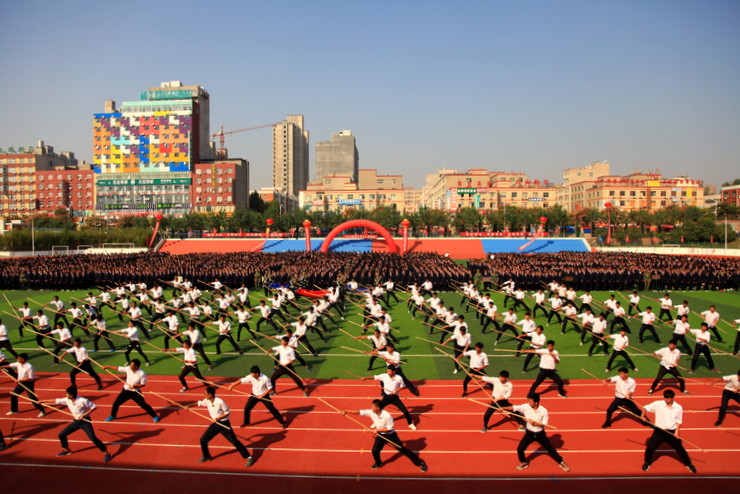2016级新生开学典礼暨军训汇报表演开始,奏中华人民共和国国歌。在执行董事王新奇、承训部队首长等陪同下,郭爱先院长看望慰问2016级新生。郭院长亲切问候:同学们好!同学们辛苦了!同学们热情回应:院长好!为升达争光!之后,在嘹亮的进行曲中,分列式队列表演开始,全院10个系6000多名新生组成70个方队,朝气蓬勃、英姿飒爽地正步走过主席台,摆臂有力,步伐整齐,意气风发,豪情万丈,显示了当代大学生的风采与热情。随后,2016级女生进行军事技能表演,她们劈掌顿足,龙行虎步,吼声震天;2016级男生进行棍棒操练,只见银棒闪烁,凌空飞舞,气势磅礴;表演男生并代表全体新生进行了“誓做优秀接班人”宣誓。男女生的军事技能表演,一招一式都博得师生阵阵喝彩。接着,新生集体背诵升达校训、升达精神与升达格言,嘹亮的声音划破天际,表达了升达学子奋发读书,立志成才,报效祖国的雄心。