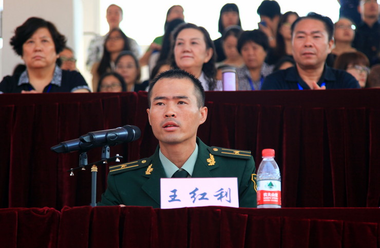 承训部队王红利队长致词,他向圆满完成本次军训任务的同学们表示由衷的祝贺,热情赞扬同学们的精神风貌和组织纪律,祝愿升达学院蒸蒸日上,蓬勃发展。