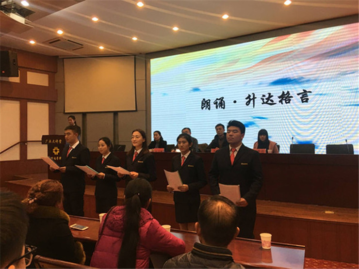 大会开始,全体人员在主持人的号令下起立并奏唱了共青团团歌。紧接着的颁奖仪式,宿管科刘玉梅科长宣读了优秀宿舍表彰名单,与会领导分别为获奖宿舍代表和宿舍楼代表颁奖并合影留念,之后优秀宿舍代表王姝冰同学为在场师生做了党的十九大的征文演讲,获得优秀宿舍代表成员为大家带来朗诵和歌曲展示。