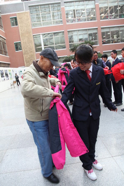 接着,崔院长发表了感人肺腑的讲话。他说,今天,我们在这里落实创办人的指示,举行“赠棉衣,送温暖”棉衣发放仪式,一件棉衣,一份深情;一件棉衣,一份大爱。希望同学们永怀感恩之心。刻苦学习,自立自强,以优异的成绩回报创办人的培育之恩。崔院长的讲话受到与会人员的热烈掌声。